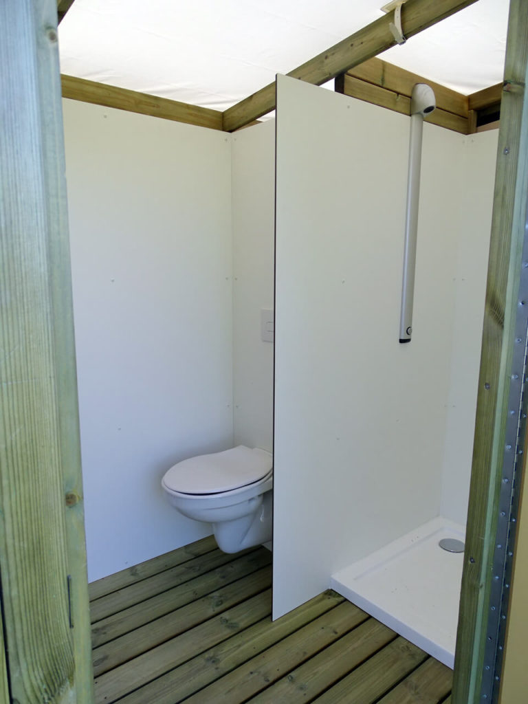 Idéalement conçu pour offrir un confort supplémentaire à votre clientèle d’emplacements nus. Il est équipé d’une douche, d’un WC suspendu et d’un lavabo.